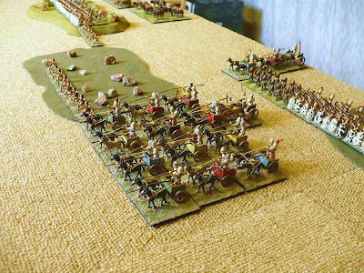 Sassanid placed an ambush of LF archers in the enclosed field with Hillmen in plantation also in ambush.