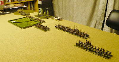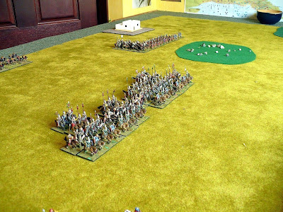 Carthos deployed with Cav Cmd on right, Warband cmd in centre and the Spainish AxS with Cv/Lh on left