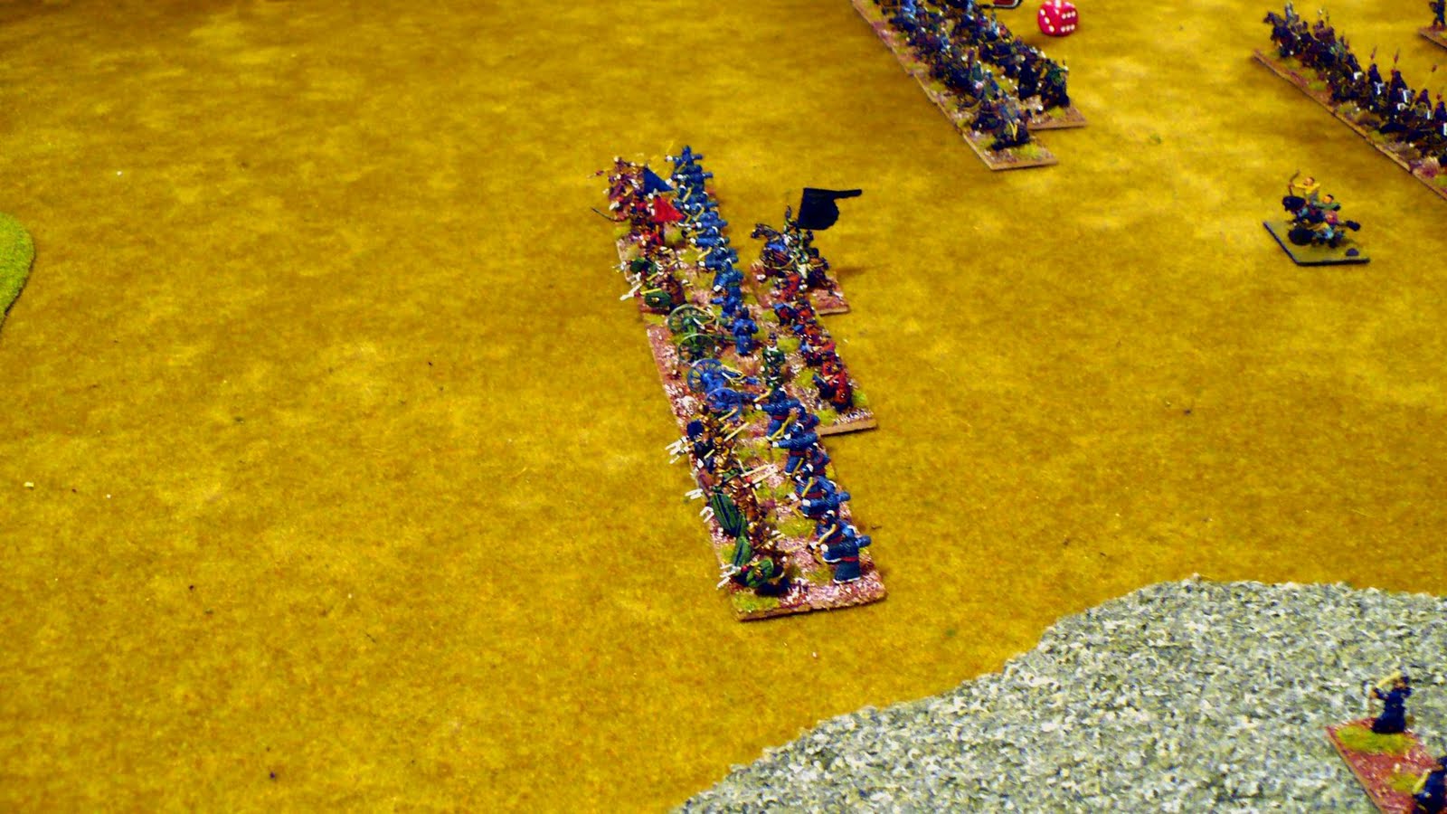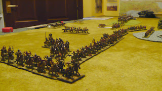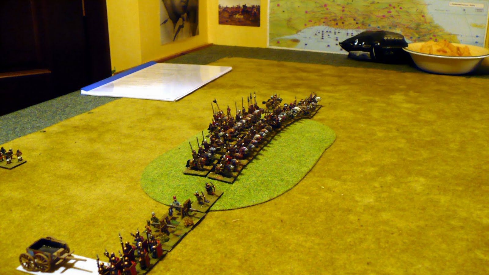400pt Dbmm game using latest draft (dated 6th April) versus Stephen using my Khazars again against his T'Ang. Game pretty much decided at deployment with T'Ang placing a large wooded hill in centre and Khazars having to deploy first. Poor Pips by Khazars made a bad situation worse and their left flank of KnF collapsed under a mass of ArtO and BxX firing and were outflanked and broken. CIC Command never got above 3 Pips until last turn. Right flank Cmd had decent Pips but a long way to go to change flanks. 25-0.