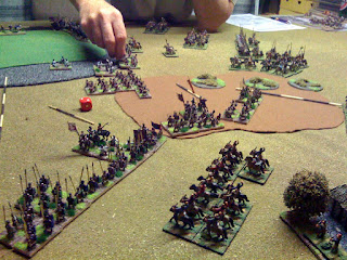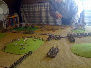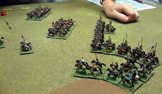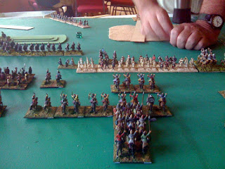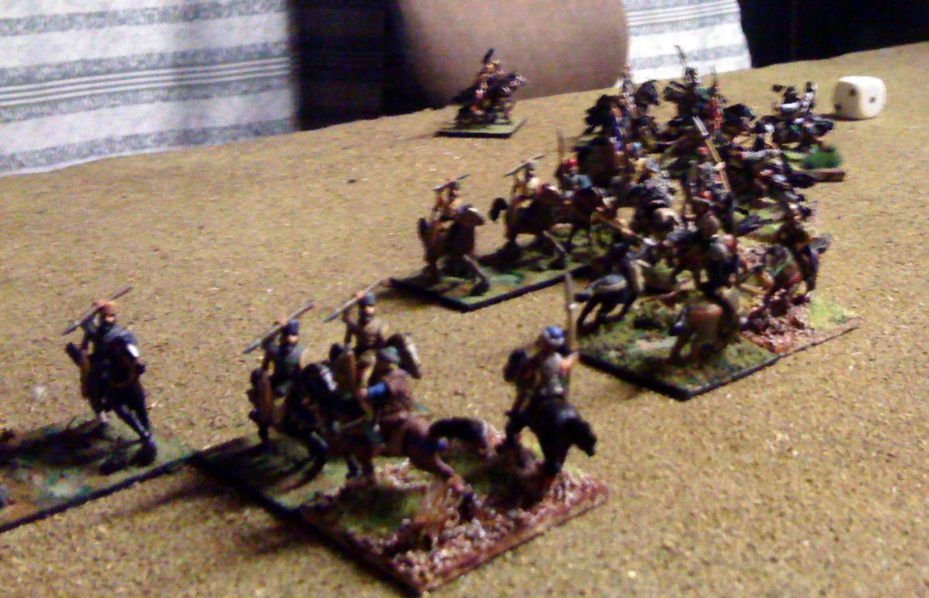 My Ally arrived turn 2 facing the enemy ally. This developed into a stand alone battle (some Han LhF joined in) seeing me rather luckily break the Hunnic Cmd but become disordered then broken myself shortly after.