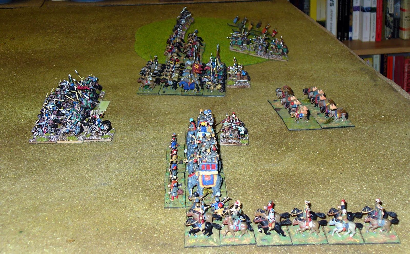I selected Kushan from around 50AD to face the Han, with a Skythian ally (I borrowed some figs to use these a fatal mistake !) 4 Elephants with KnX and lots of LhF some psO and AxO comprised my army.