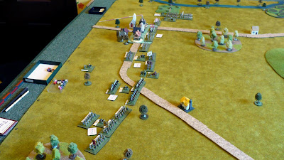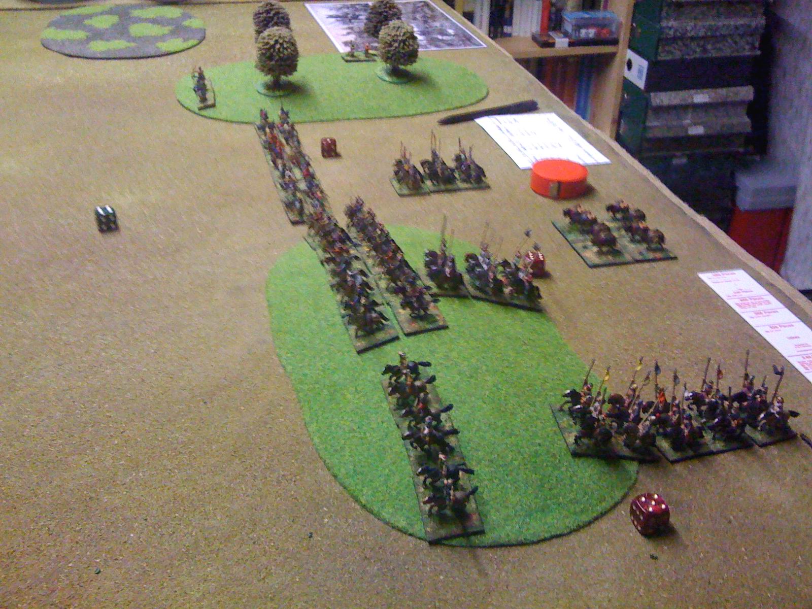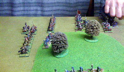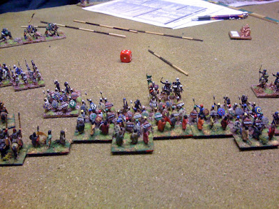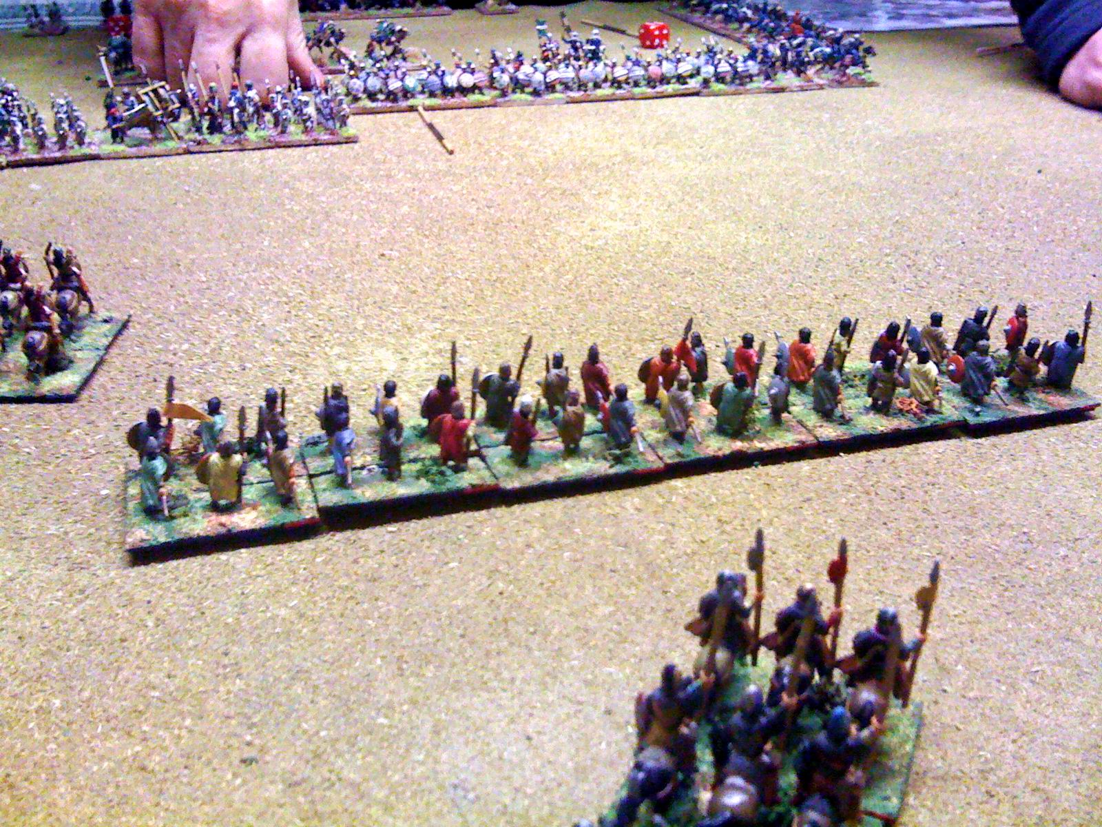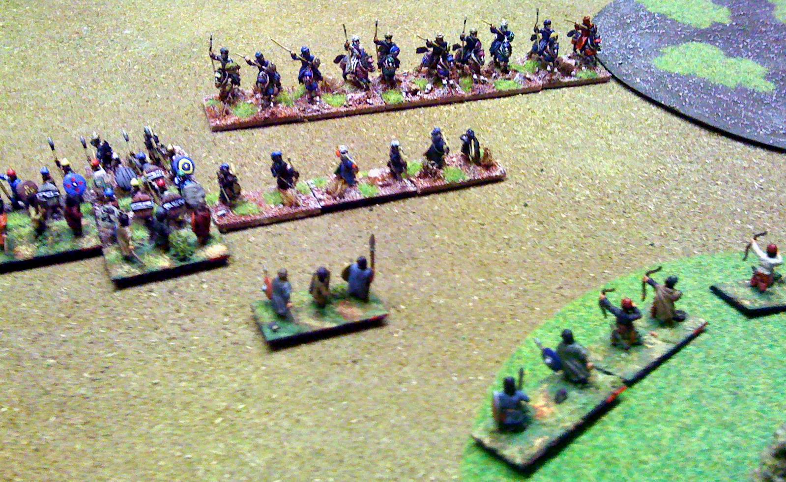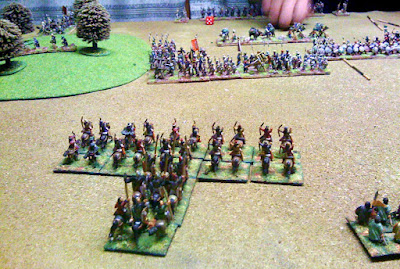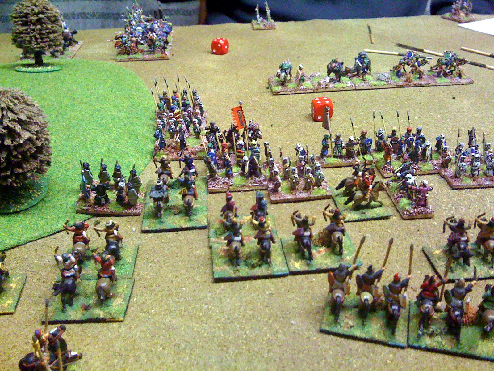 Maurikian Byzantines (right) vs Arabs. Hun nobles in wedge emerging from wood, those were the days !