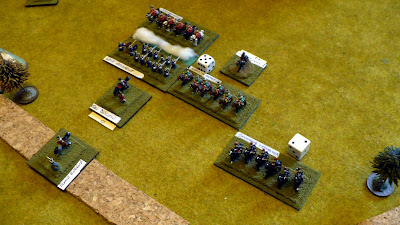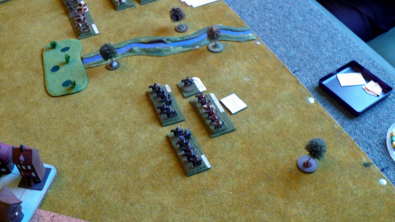 Imperial Horse haring off on right whilst supporting Foot lags behind (couple of turns with no moves) Prussian foot push forward in centre (not having learnt lesson of M&R game !) 2 views of same situation.