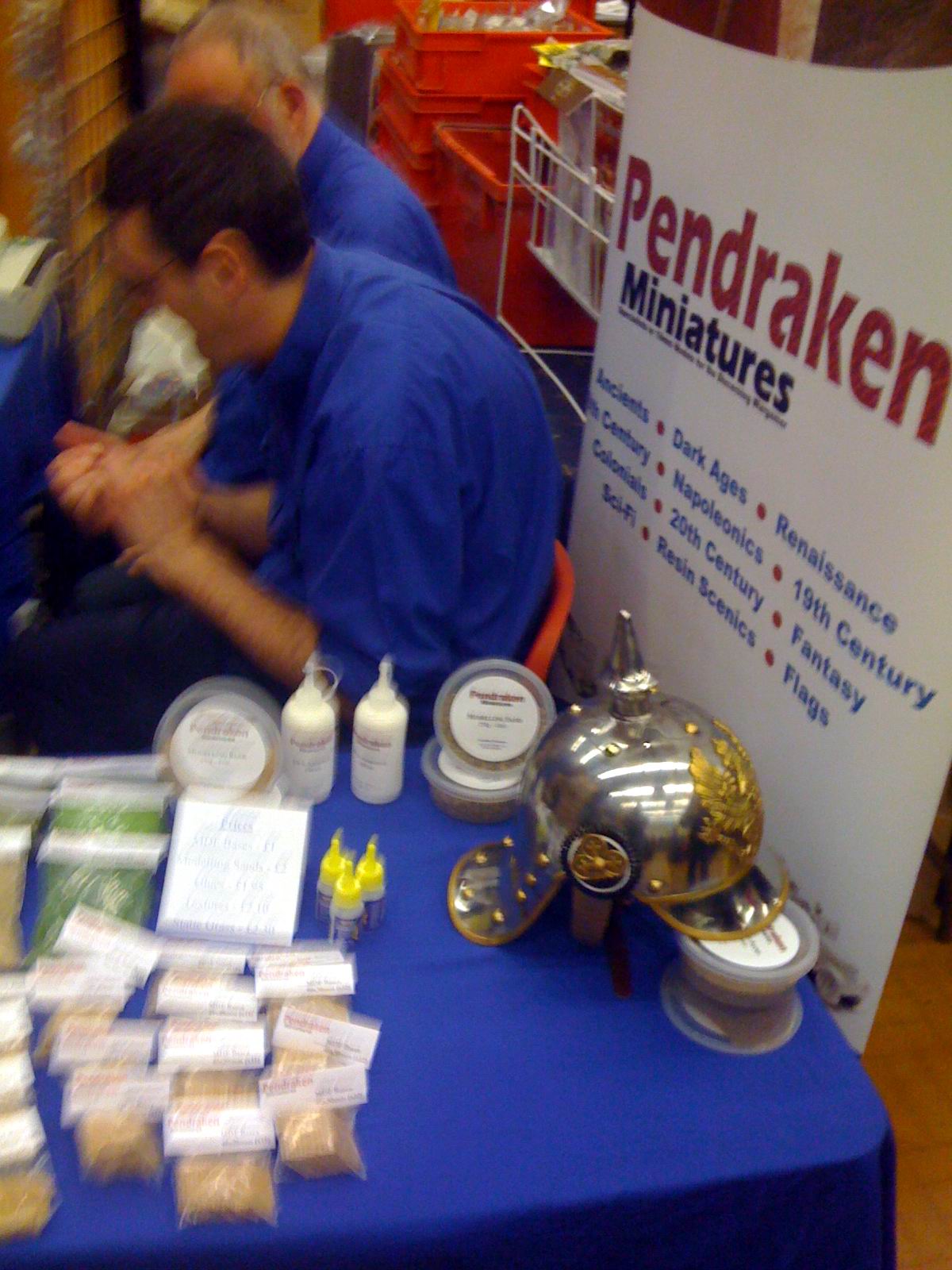 Checked out several 15mm ranges of Napoleonic Prussians for my Lasalle project and was impressed with the Essex and Old Glory ranges and with Black Hat miniatures of whom I knew nothing. Bought several rule books (addiction continues...........) and of course a 'few' figures (some 15mm Selecuid types as allies for my Galatians and Adler 6mm WWII British -lovely little men those), several terrain items purchased and yet more dice (there has to be one of the millions in existence that doesn't hate me !?)