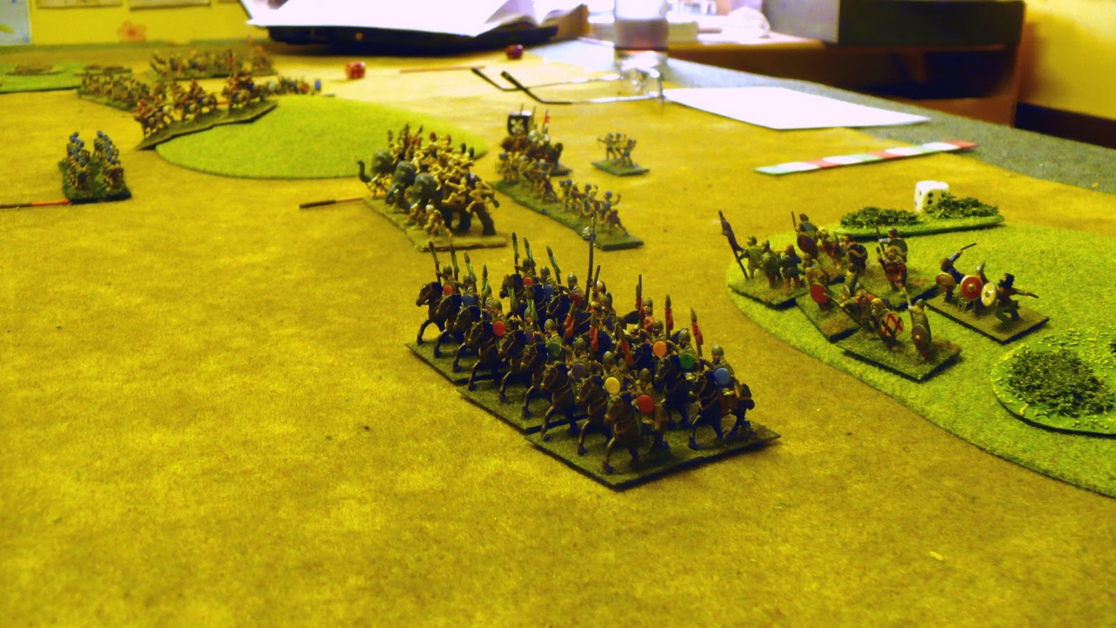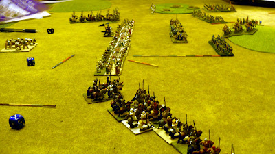 Don't let the fives and sixes on my dice fool you they were just set there not rolled, I had reasonable dice rolls until combat ensued then it was my version of the 'One Show' (Nik shook my hand in sympathy at one point after two remaining Pip dice -other two commands shattered- rolled snake eyes !)