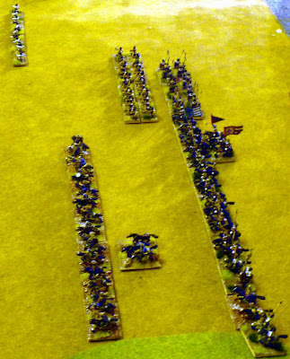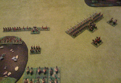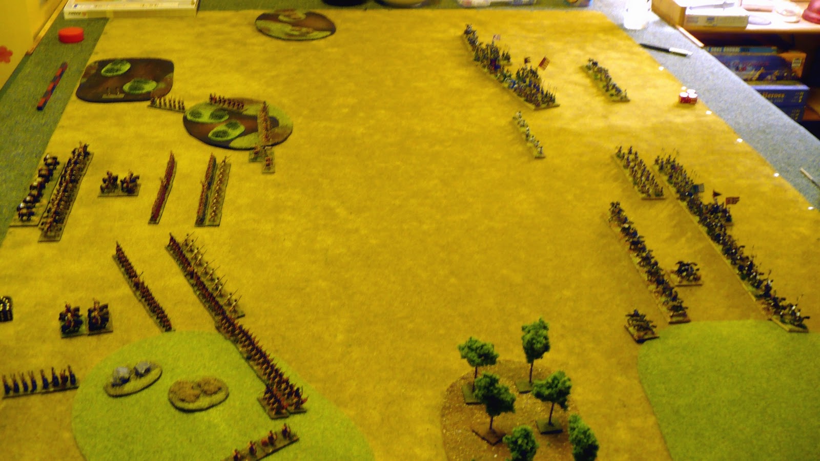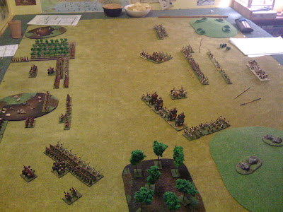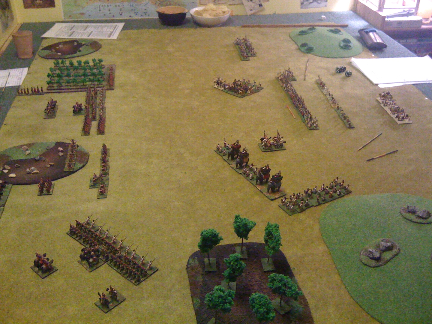 Nazi massed on their left intending to try to hold in centre with one Inf Bttn whilst other attacked forward on left with Tigers in between supporting both. Ivans spread out across table but mainly concealed in woods and entrenchments with 3 Su85s in 'special ambush' (an extra hidden item of scenario system) and T34s in reserve off-table.