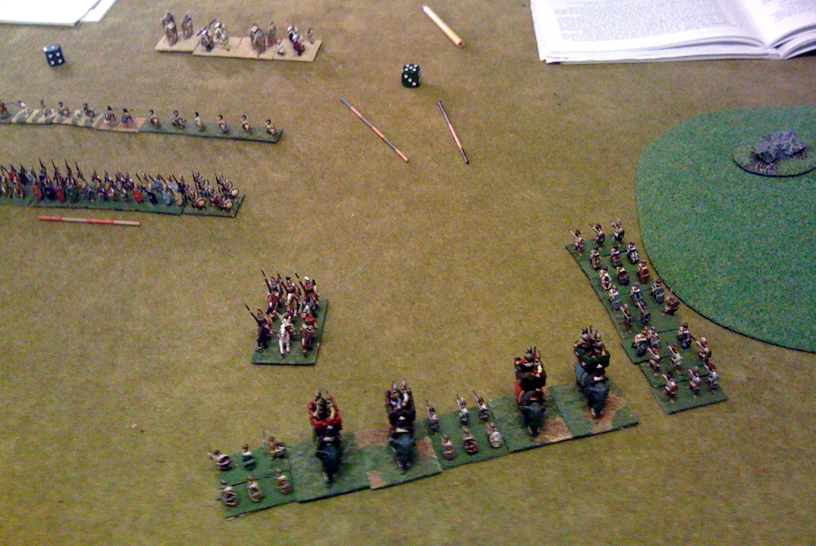 Nazis advanced into a hail of artillery & mortar (Katayushas, 76mm Field Guns, 81mm mortars and the Su76s) all firing from concealed support positions behind Inf stands. Nazi recce units suffered horribly as did the Engineer coy which was decimated by an accurate Katayusha strike ! Tigers managed to gain a large hill but suffered losses to the ambushing Su85s and the 76mm guns of Su76/towed batteries. FW190 arrived and only had enemy AA units as targets but managed to kill one. Ivans managed to easily change orders of Bttn on their own left which swung onto the flank of advancing Nazis. T34s arrived and took losses from Tigers but both formations were forced to test morale with Tigers failing and T34s passing twice !! Heavy loss to an Inf Bttn coupled with the Tigers demise lead Nazi commander to yield the field..................