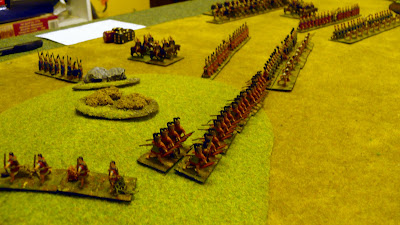 Played first WWII games in absolute ages today at Stephens using Spearhead rules and 6mm kit with the excellent scenario generation system (by Keith McNelly in NZ). I used 1944 Germans against Stephens 1944 Russian hordes. Scenario system generated Nazis as Hasty Attackers against Ivan defence. Table had been set-up prior to game and we amended slightly for objectives then Ivans picked preferred edge and diced to stay on it which they did. Nazis had 2 Veteran Infantry Battalions with supports from 2 Flak attachments 2 Recce Companies and an Engineer Company along with a Battalion of Tiger 1s (6 Panzers). A battery of Nebelwerfers and 3 x 150mm Artillery along with a lone flight of Fw190s completed Nazi array. The Ivans mustered a full Mechanized Infantry Brigade backed by Katayusha's (mean !!) a Regiment of Su76 one of Su85s and a T34/76 Battalion.