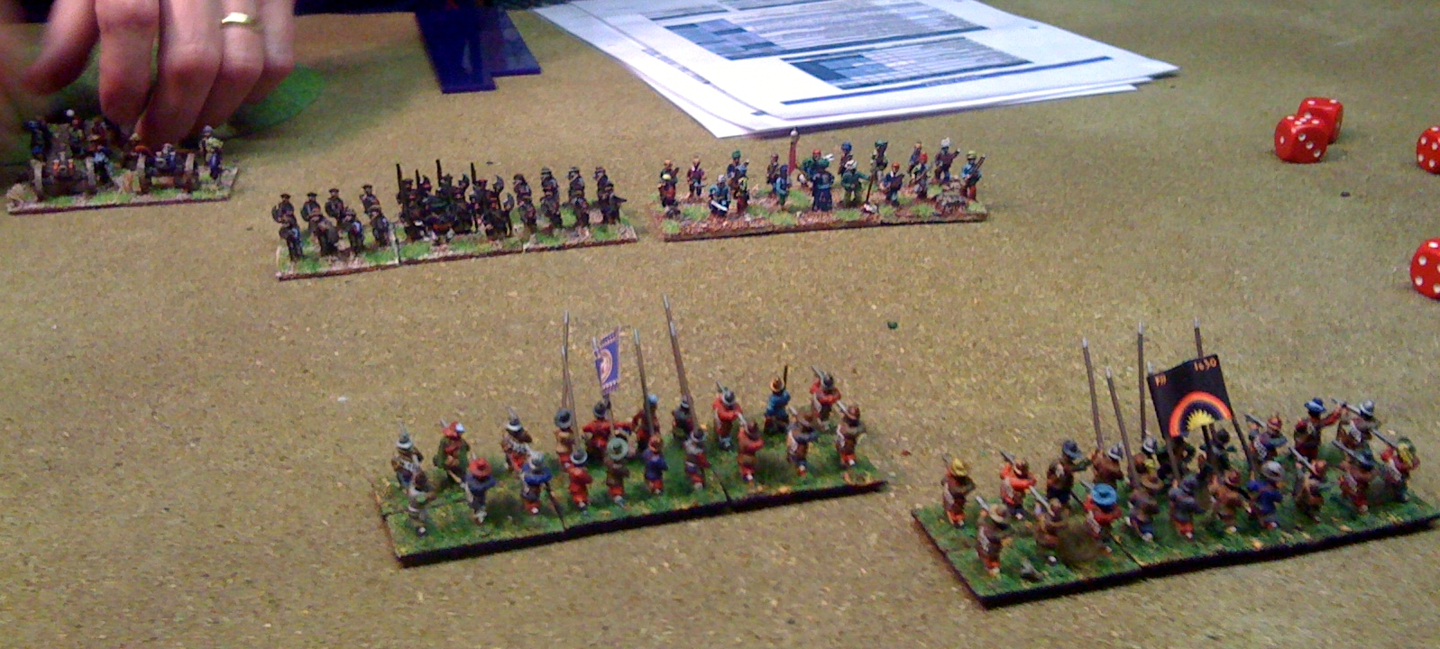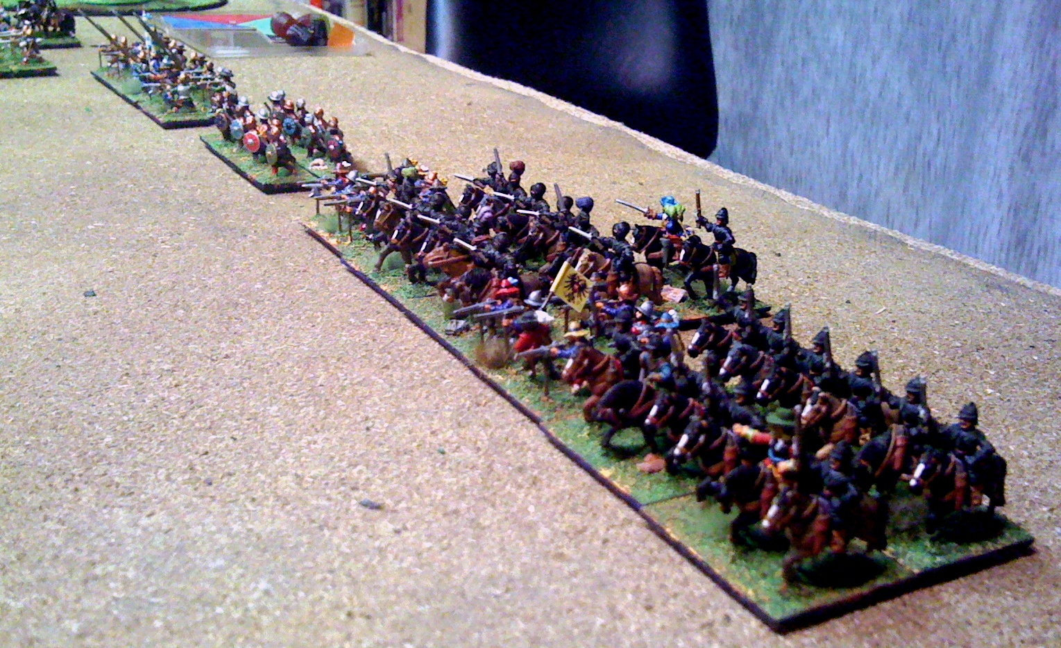Turk Cavalry after cowardly evading from Heavy Foot charge. Veteran Imperial Pike & Shot unit on right (with Regimental Gun) was shot to destruction by Turk Artillery and Janissaries (bit scary when they roll 8 dice at close range !!)
