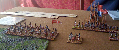 Played Dbmm game today opening game in Ulster League (1300AD Onwards) using Teutonics (kindly on load from John Brittain again) against Seamus and his mighty Later Swiss.