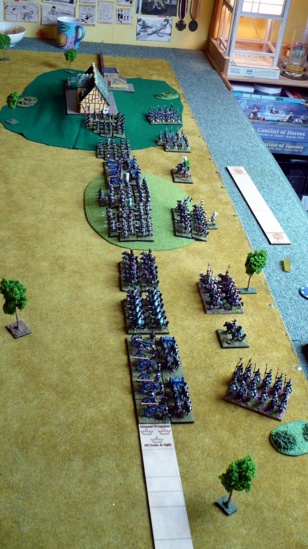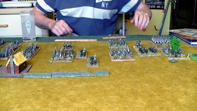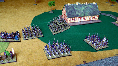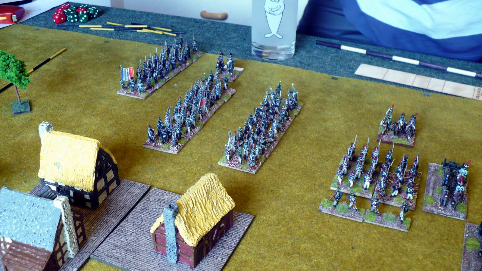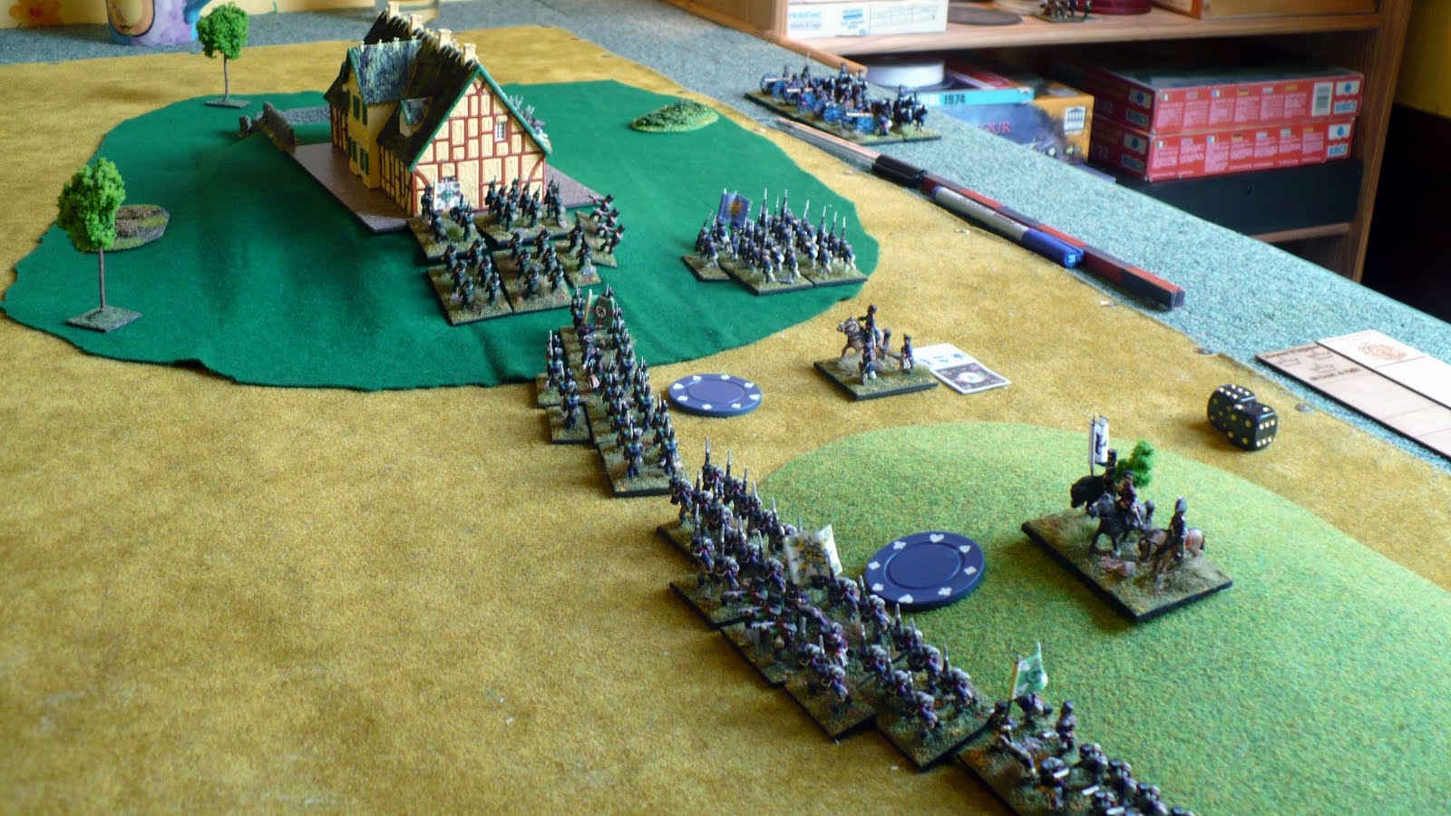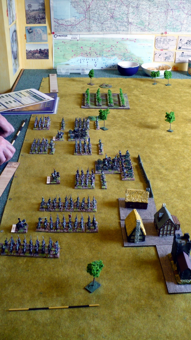 Both sides vie for position at the Chateau on Prussian right (game ended before they got to grips)