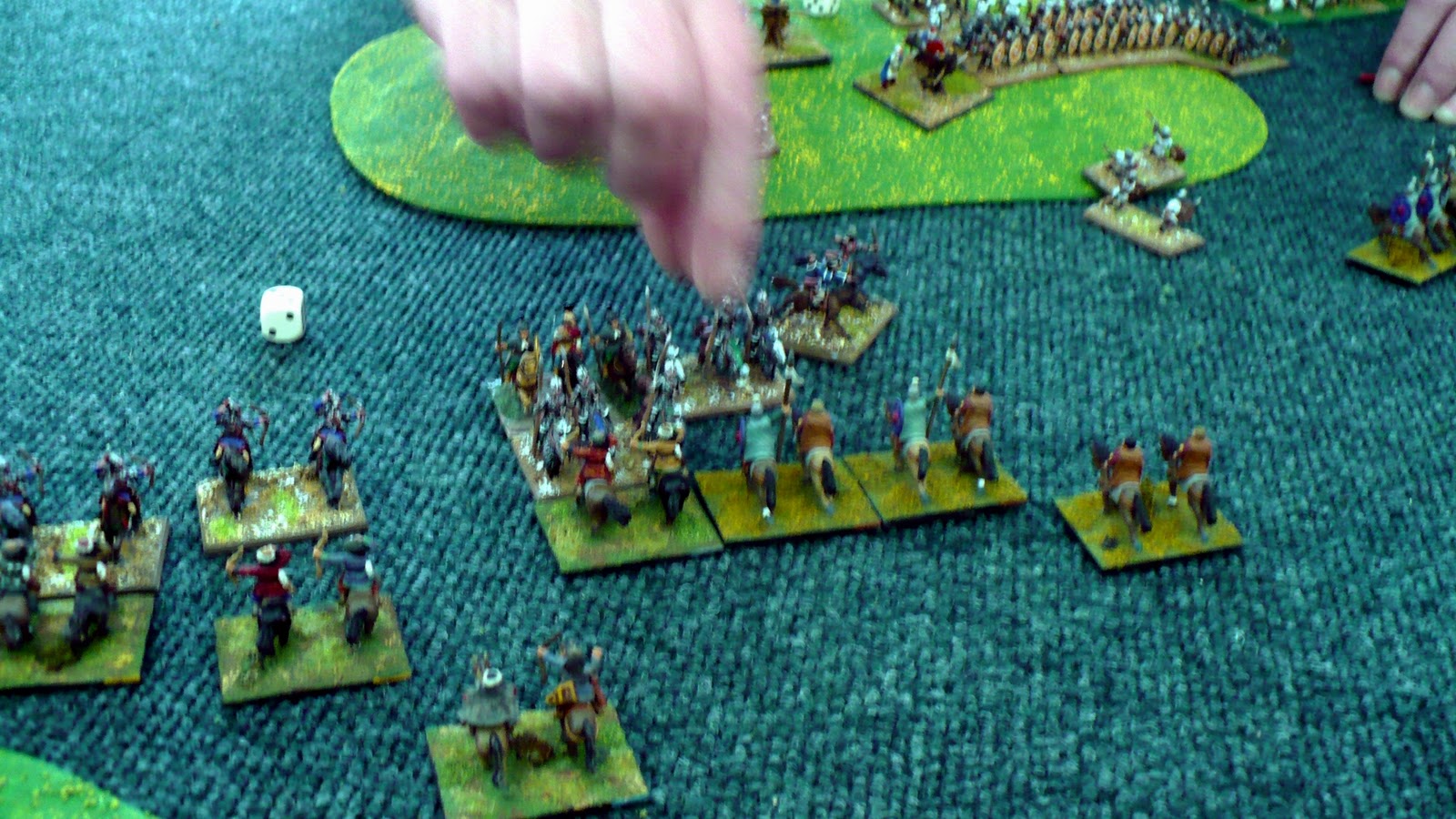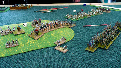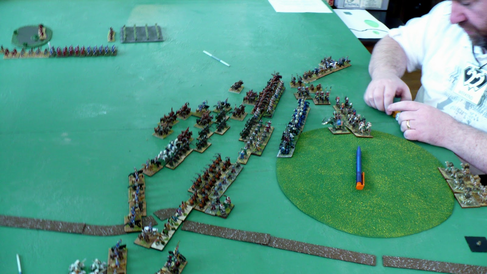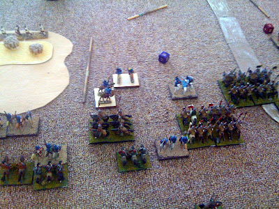A great (albeit quick) game as I advanced right up to his army and managed to break his left wing command pdq* with some decent combat rolls. (* pretty damned quick)
