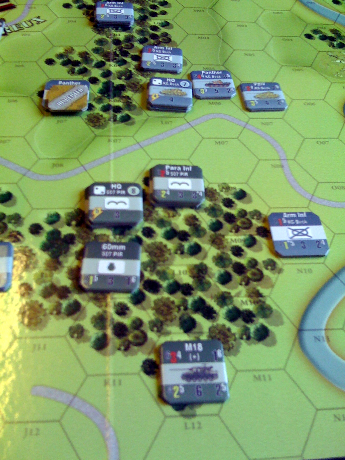 Had a couple of hours today to run through a few turns of the initial 'Noville' scenario. Overall impression is rather good as I like the Chit Pull mechanism and movement, combat (essentially an opposed rolls system) etc are all fairly straight forward processes. Bit of concern as to HQs wherein they are of course very important but die (can be replaced with lesser versions) if other units in hex are eliminated, so could see potential for this being main thrust of game many times (ie kill the HQs) only time will tell.