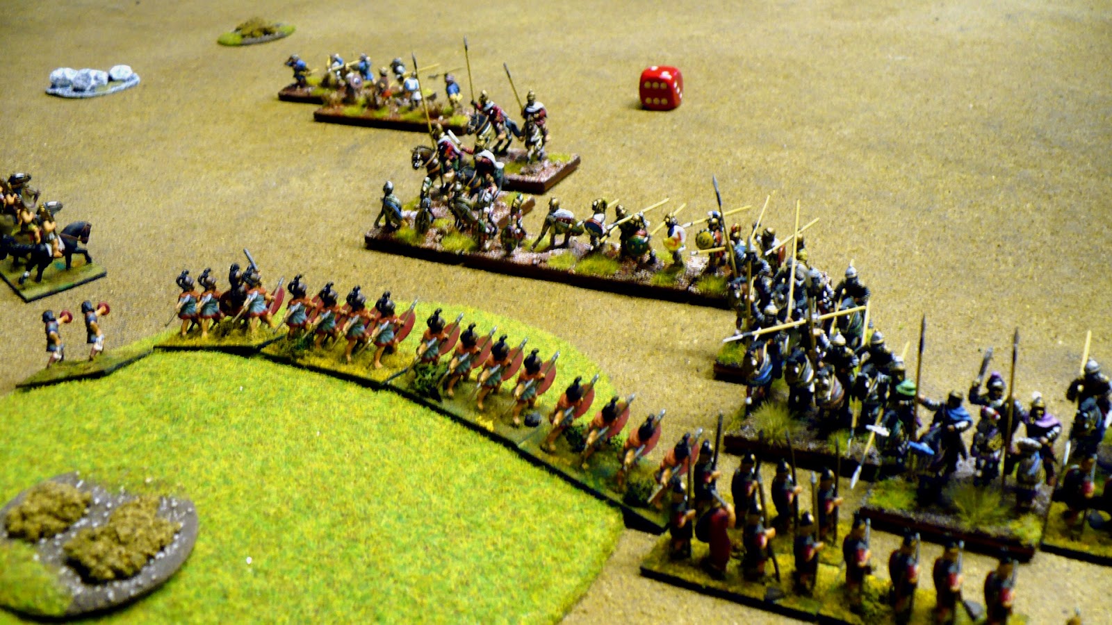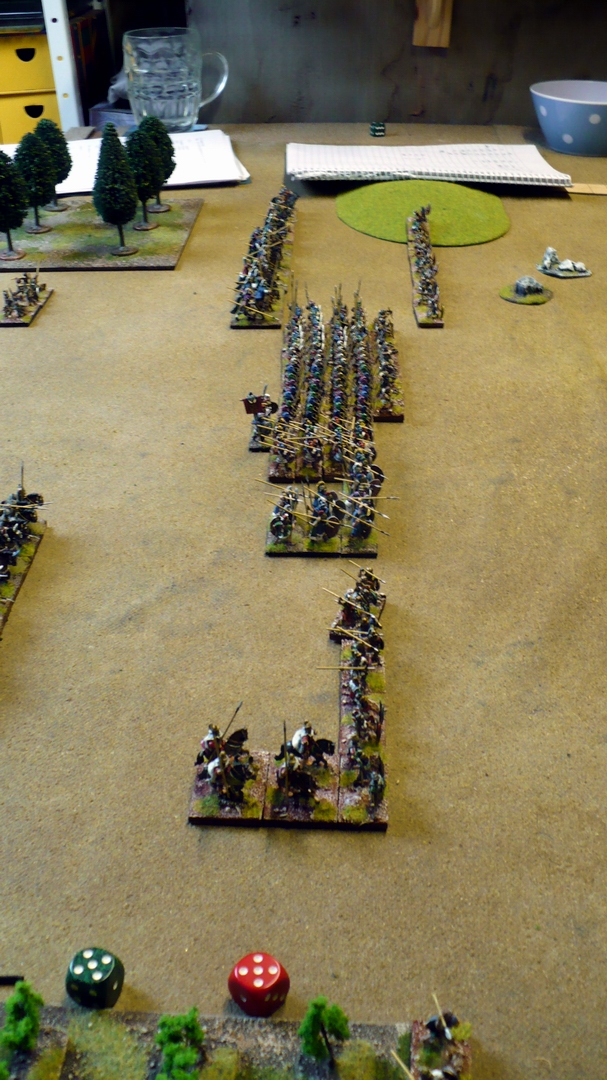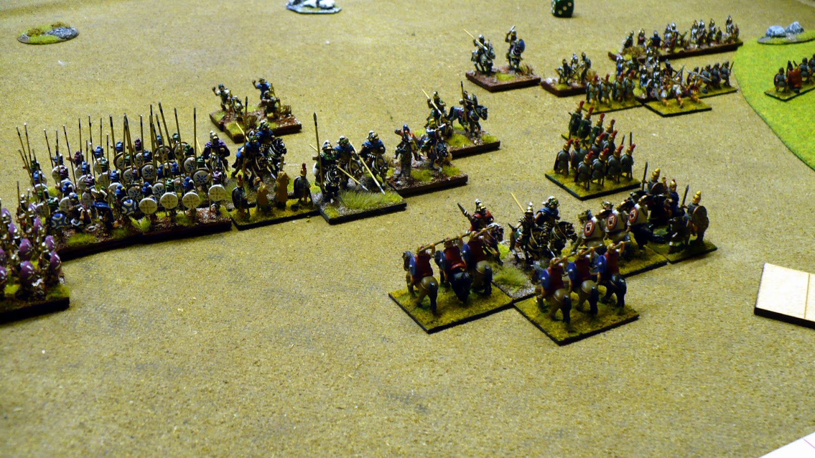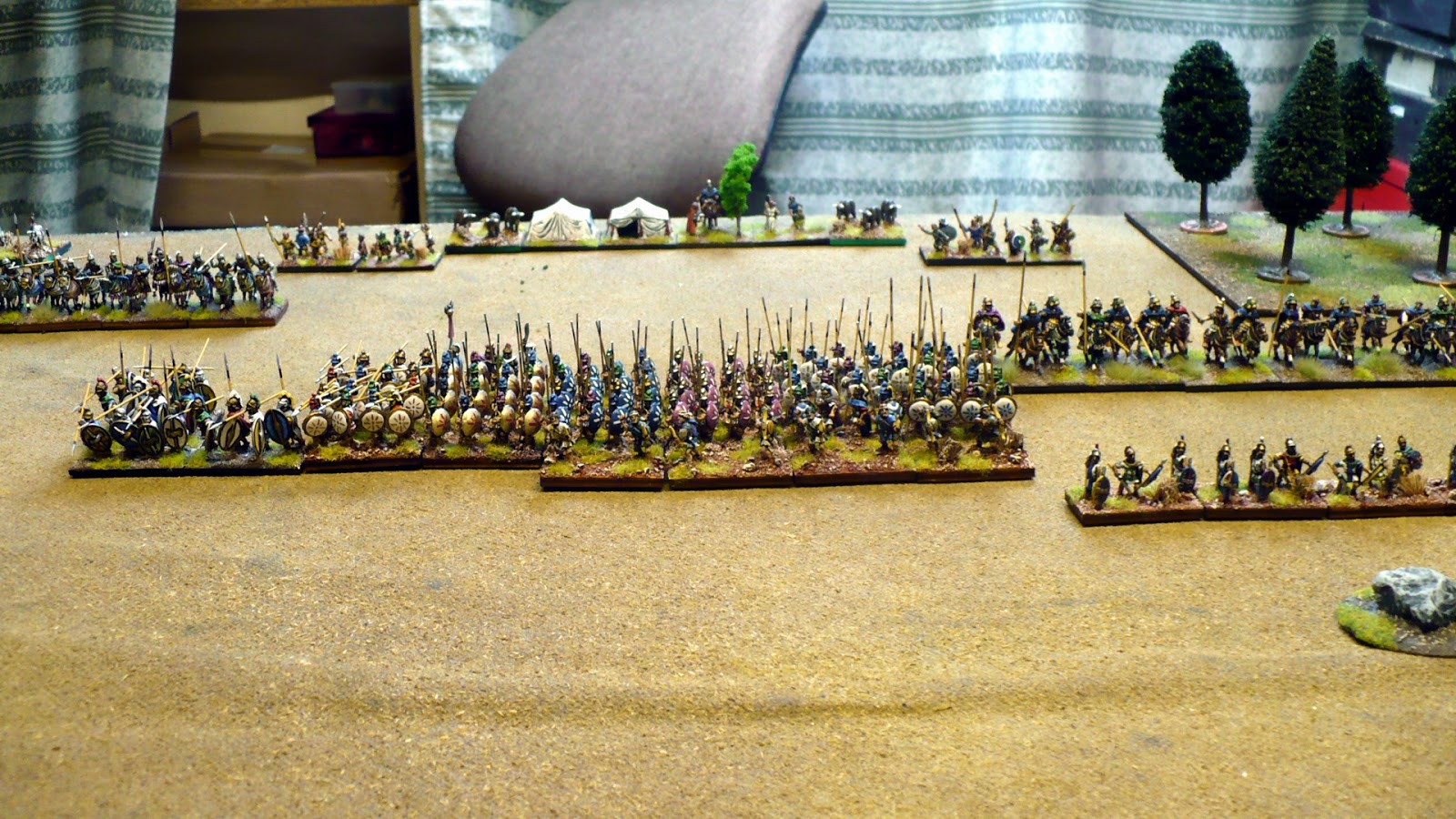 Game was essentially decided though by charge of the Greek Companions (KnF in wedge which never count overlapped) and the massed Phalanx (very tough to disrupt) which quickly broke my right flank command.