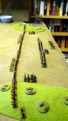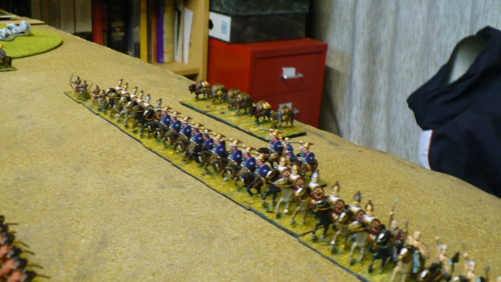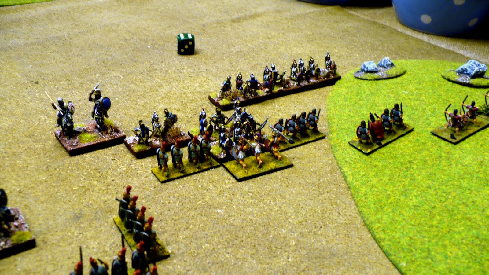 I brought my Polybian Romans (which I intended to use at Cork) with intention to play a more defensive game than usual to give him practice against this sort of play.
