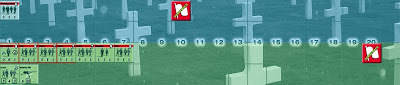 Second scenario took us to the Grain Elevator in downtown Stalingrad. This introduced the Urban rules along with Rubble and Factories (ie the elevator in center of map). I had several SMG units but fairly widespread victory locations to defend (scenario has several within the Grain Elevator) with couple of MMGs and LMGs and two Stachel Charges and several Wire entanglements. Fritzs had lots of Line troops with MGs and a 75mm Howitzer. It looked like a very tough proposistion for Fritzs and seemed so in early stages, especially as on German right my Dad inexplicably took on a lone SMG squad with a Satchel Charge in a building surrounded by wire (I think he could have easily ignored this but got fixated by the VP location worthless as it was). The SMG squad set off the Charge in adjacent hex, rubbling it and suppressing its Fritz occupants whom he then proceeded to melee and kill (lucky discard replacements yielded two Ambush cards - which break enemy unit prior to melee). He did of course succumb later but Hero Of Soviet Union medals all round for them albeit posthumously. Again I got support from a 122mm Battery but the close nature of combat meant it was bit risky to use at times. Fritzs did manage to break into the Factory and take a key VP location but I meleed them to death here too. However all this hand to hand was not saving my men from superior German firepower and despite my efforts Ivan losses mounted to again force a victory by Surrender . As per previous scenario Fritzs generated 'Zombies' several times with two appearing behind my lines !! Great stuff again and a very close run thing this one.