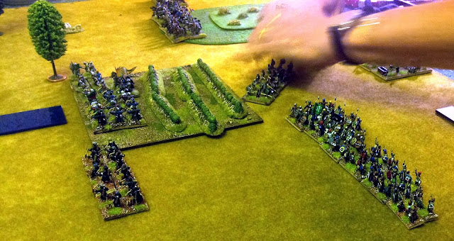 He sent my two Heavy Cavalry Lance armed units on an out flank move on enemy left and we tried to refuse our own left flank (quite a lot of terrain over there).