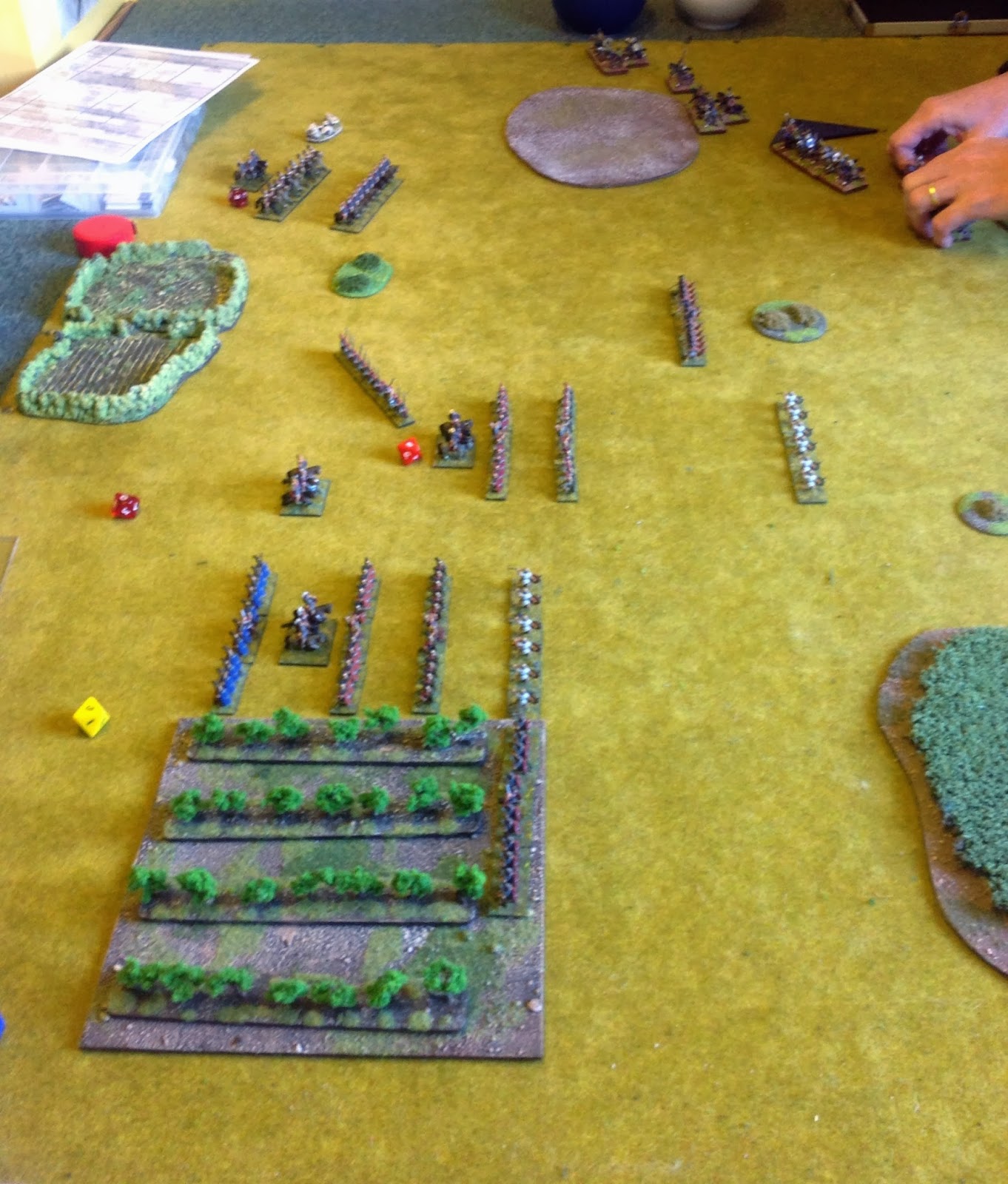 We set up terrain using Field Of Glory but used the deployment system of POB.