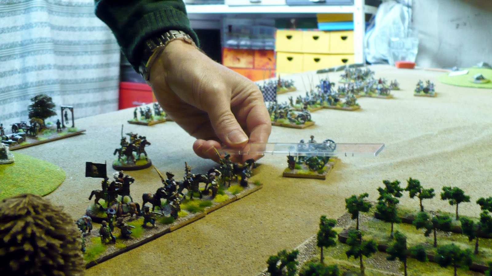 I did manage to get a flank attack on (1 Cuirassier and a unit of 6 Reiters) but it narrowly failed to break through.