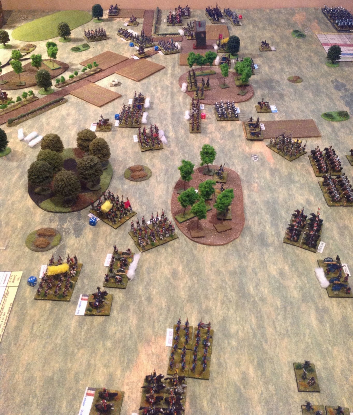 Firing phase is next and is simple enough with units rolling a number of dice based on current Elan (ie strength/morale points), range (1-2 BW for musketry 1-2 and 2-8 for Artillery) and type with several modifiers for tactical situations and Traits.