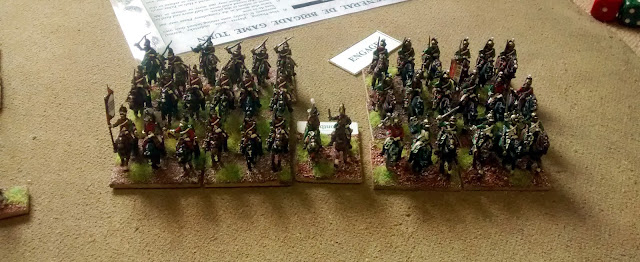 We rolled for sides and I got a fierce of EnglĂsh units to face the Ducs Jacobite Irish.