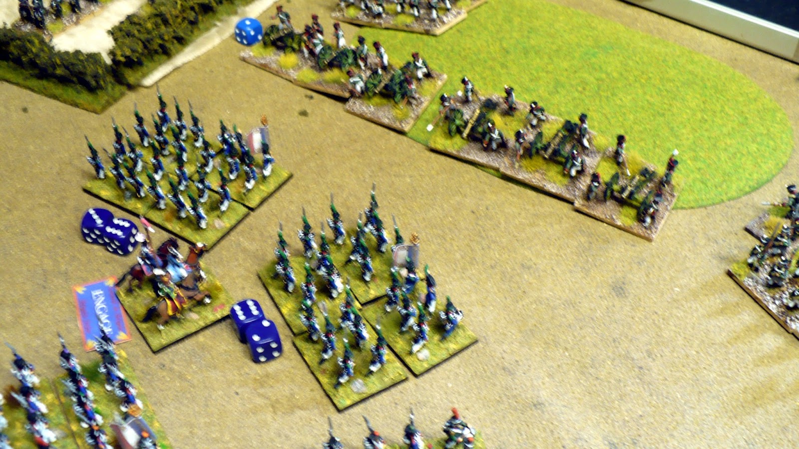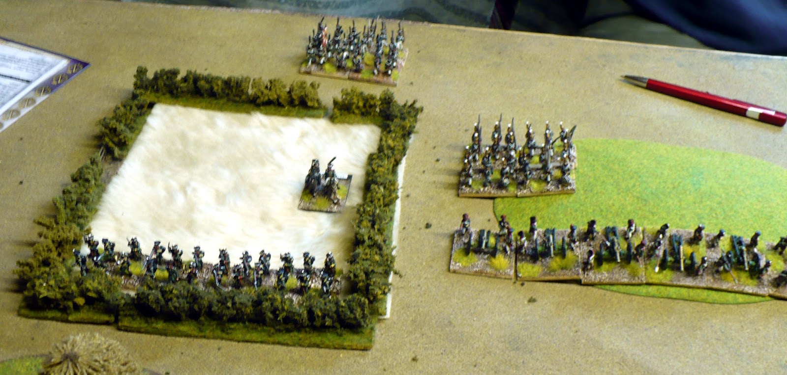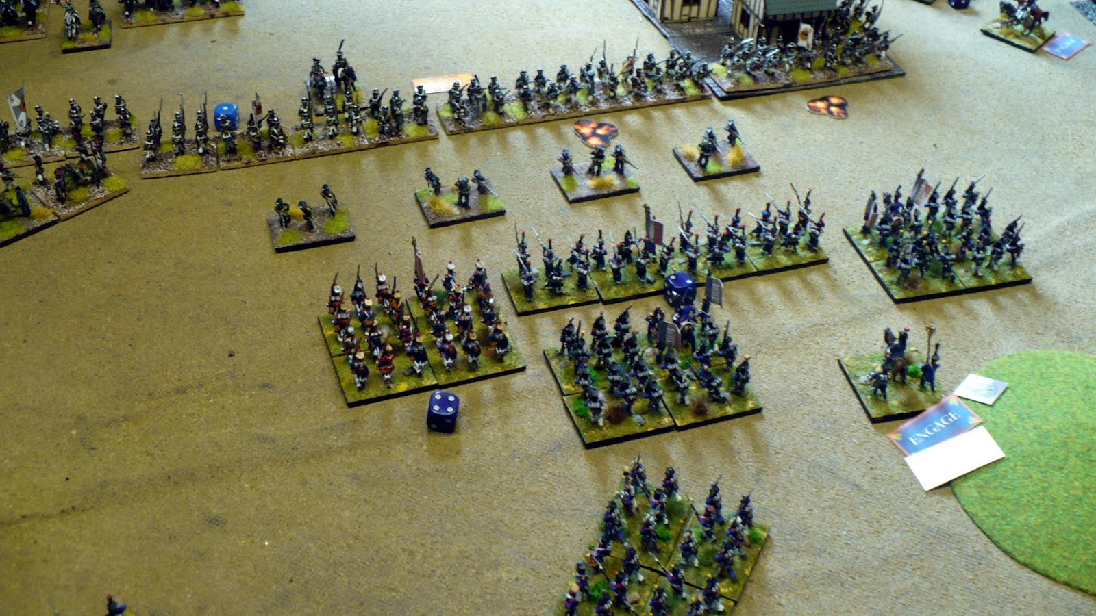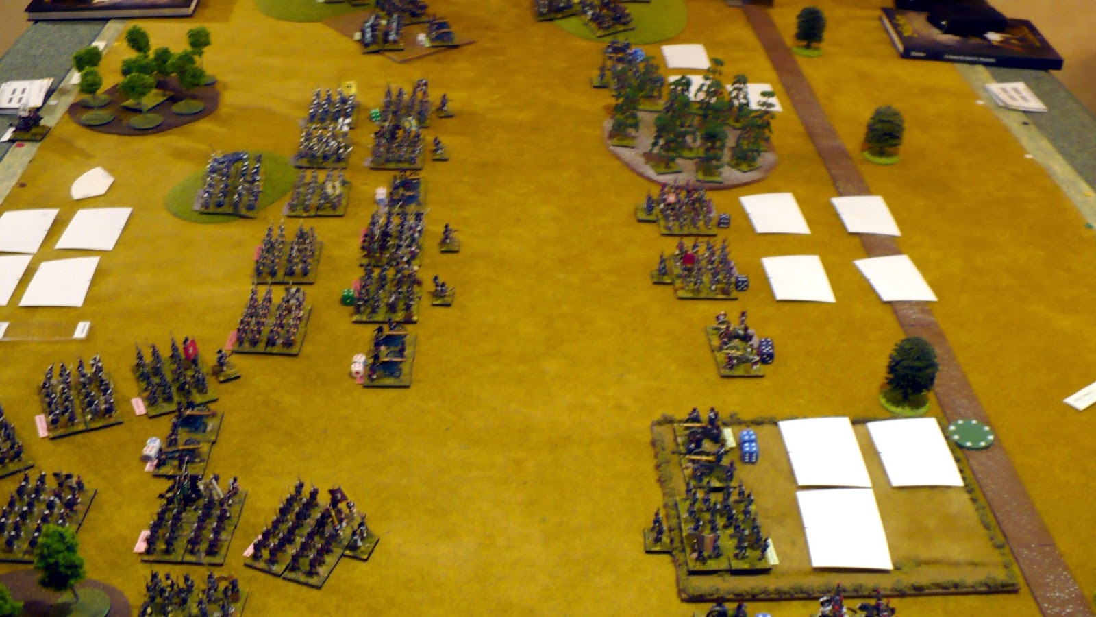 This fell nicely for Russians as it had two protected flanks with a village and a large field (both difficult terrain in GDB terms).