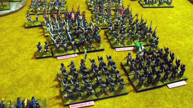 French had 2 Infantry Brigades with 3 Veteran foot, 2 Line and 4 2nd Line each with a 2 gun battery.