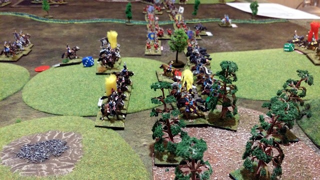 Cavalry clash on uplands (note use of multiple hills to denote a large hill area)