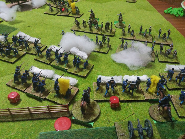 http://warfareintheageofcynicsandamateurs.blogspot.co.uk/) using his 20mm ACW figures (some nostalgic figures !) using a Fire and Fury scenario covering Stones River battle again this time as Federals (I played it a few weeks ago as Rebels using Regimental Fire and Fury).