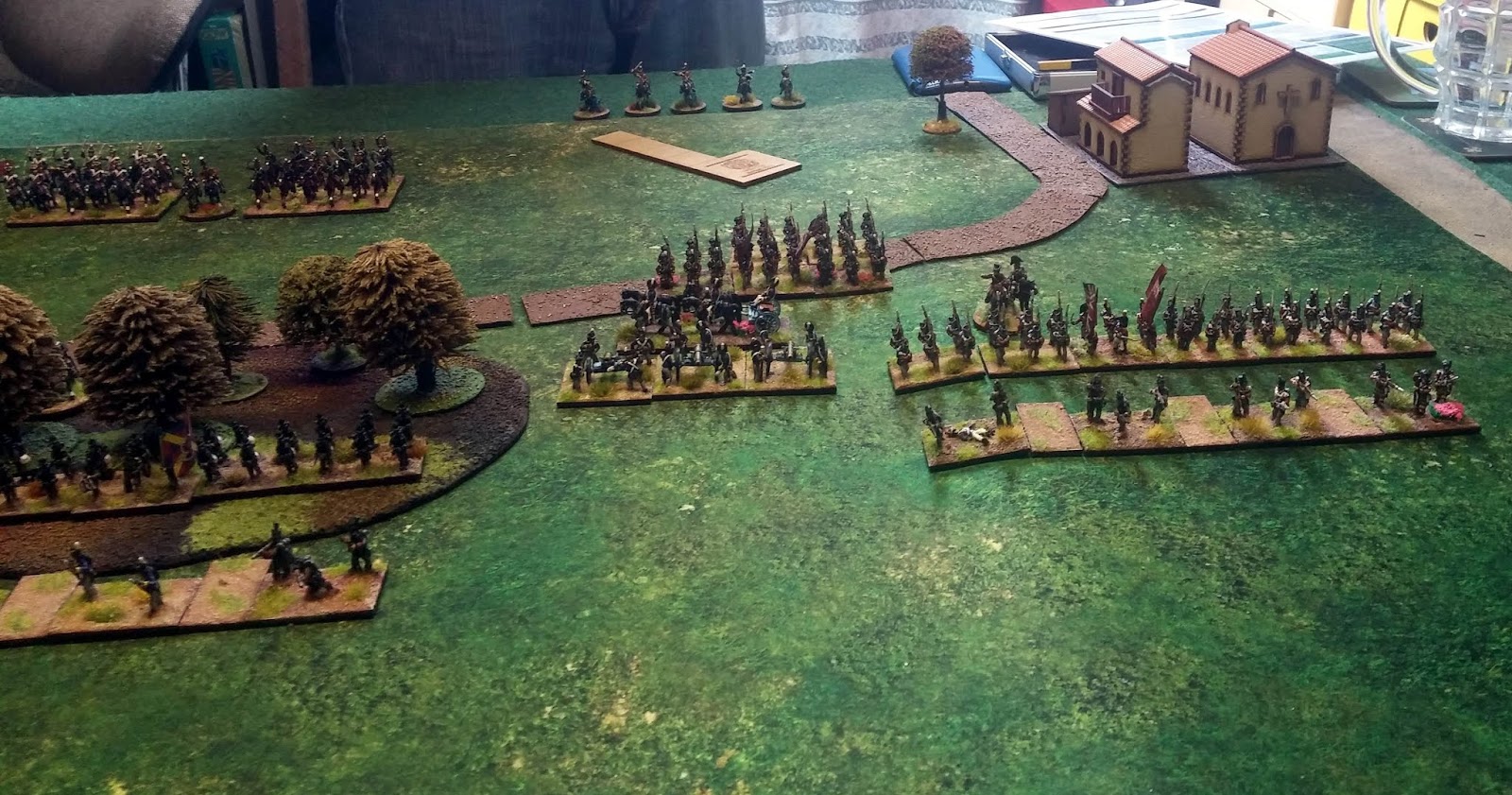 Using SOB with couple of minor house rules I use (relating to set up of terrain) we had a smooth process yielding an interesting battlefield with Prussians able to force Austrians to deploy a command first (Deployment Advantage) but with Austrians gaining a morale pool boost (Strength).