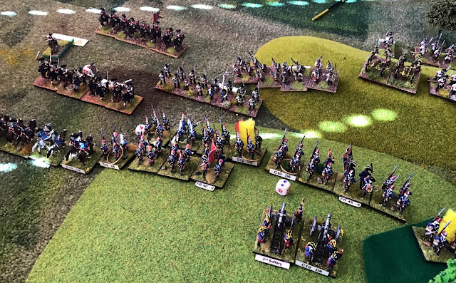 A major cavalry battle occurred on my left which after some to and fro saw my units wiped out and the flank of my adjacent Infantry Brigade exposed.