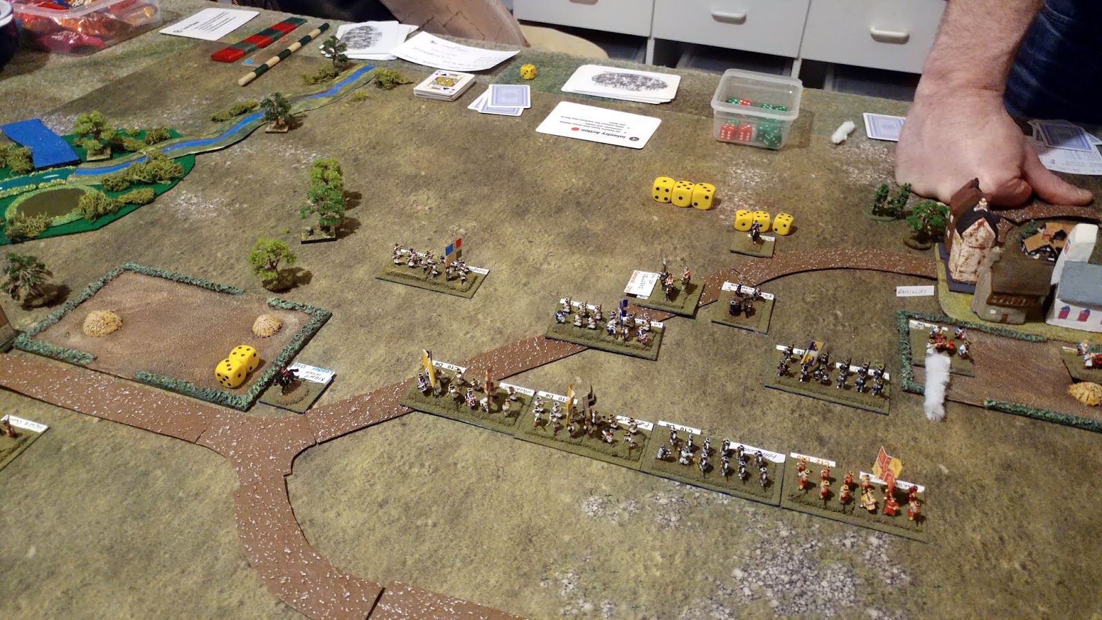 On my right (yes you guessed it the Corbynites) I was trying to advance across the river but was hampered by failing move rolls.