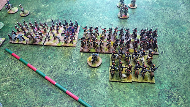 Game hinged on encounter on my left between my 2 small Dragoon Brigades and 2 Large French Dragon units.