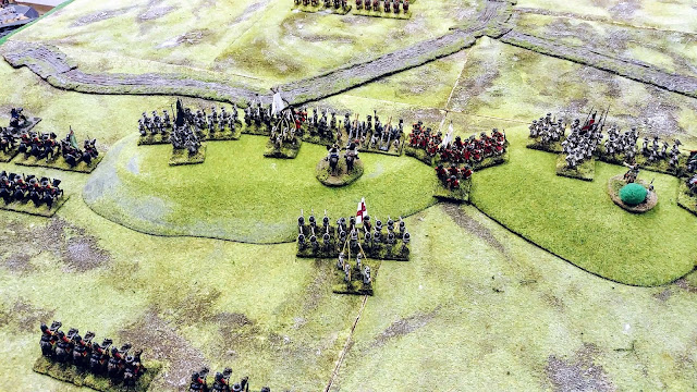 On Allied right Billy charged from get go (its BP system !) hitting my own mounted and 2 units of Dismounted Dragoons (treated as small units of skirmishing Infantry).