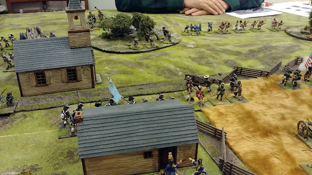 At Billys last night with Bryn and we played a 28mm game using Rebels And Patriots again, but this time using Billys very nice AWI 28mm stuff (some very nice Old Glory figures in the mix).