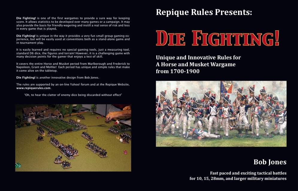 Played first game with Die Fighting rules (by Bob Jones of Piquet fame) using my new Prussians against Stephen's French. A very interesting and fun set of rules with lots of nice features and subtle rules. Game was played at essentially the same level as our Lasalle or Field Of Battle games (ie sort of grand tactical). I fielded 15 units, totaling an initial 176 dice against French 13 units with 180 dice but after rating units and commanders I ended with 158 dice versus Stephen's 175. As it was a 'learn the rules' game we hadn't put much (ie any) thought into a scenario and simply threw out some terrain and set up opposite each other and went at it. Main lesson is that DF is big on resource management (ie your dice pool which is used for all actions/reactions casualties, morale etc) and a 'advance with all units everywhere' approach is very costly in resources. Once shooting starts the drainage of resources greatly increases as both firer and 'defender' roll opposing dice. Nice feature of game is that its not purely base resource dice that are used (a max of 2 on any 'action') as these are supplemented by Free Dice (awarded for different tactical situations/options) and Leadership dice which are allocated to commanders ranging from 1 - 5 (these dice are able to be allocated to actions but only replenished on appropriate phase). The phasing or turn sequence is another innovative system with lots of different options available. We used a variable system (and utilized the 6 phase cards that come with game) but with my CiC being Inept (oh yes indeed) I had to randomly select my cards whereas the French CiC being Fabian (a type not a surname !) was able to select his which was at times a distinct advantage especially when reloading or replenishing command dice was key. All in all we were both very impressed with the rules and are both keen to give them another outing maybe with our SYW toys next time which using a different period template should play somewhat differently as its the Linear warfare period.