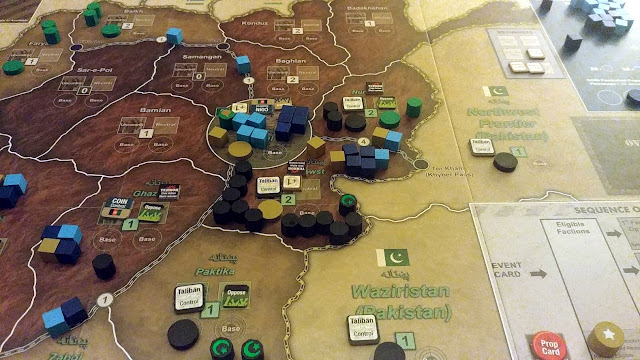 Another interesting spin in the 2 player game is that the Coalition can be paired with the Government (as we did) or the Warlords, leaving the Taliban and Government to 'marry' up.