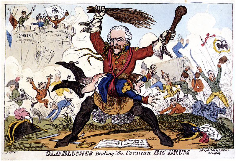 Prussian center suffers disruptions from French artillery (Prussian battery already destroyed)