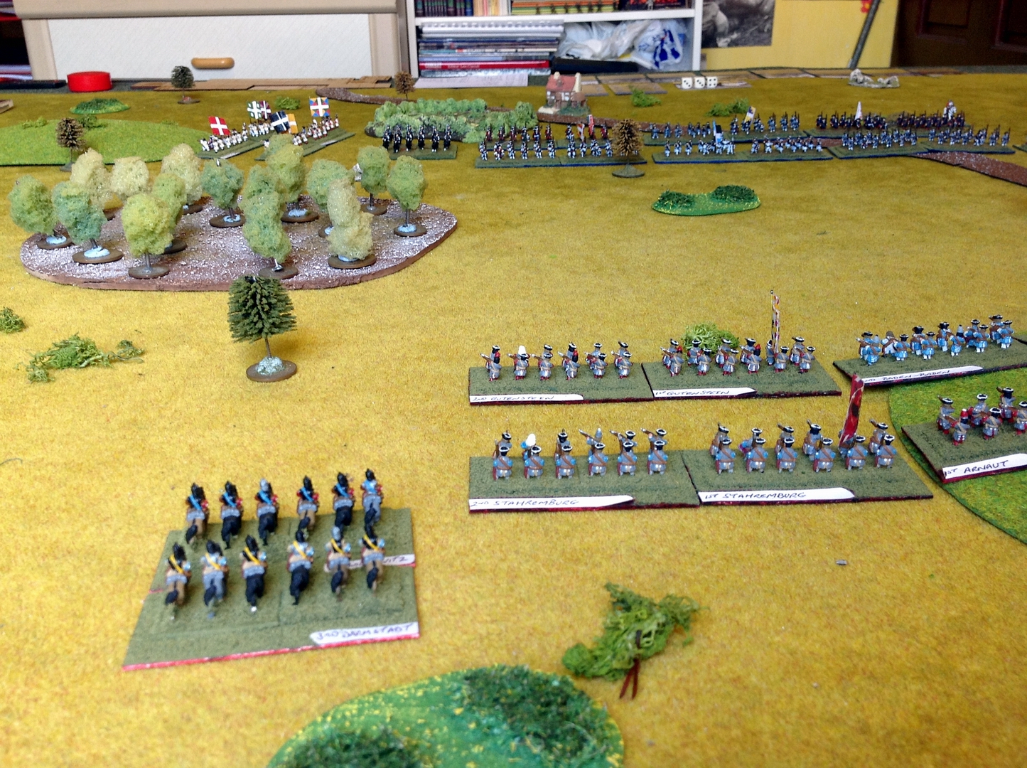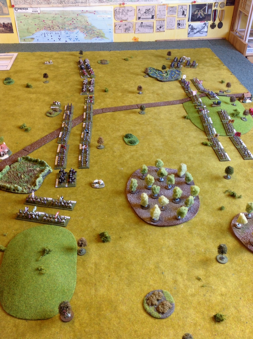 A really enjoyable game ensued with Prussian setting up second and threatening my right wing with his Cavalry.