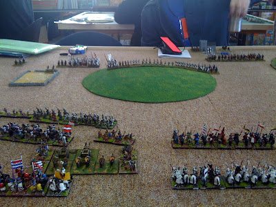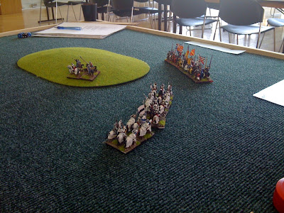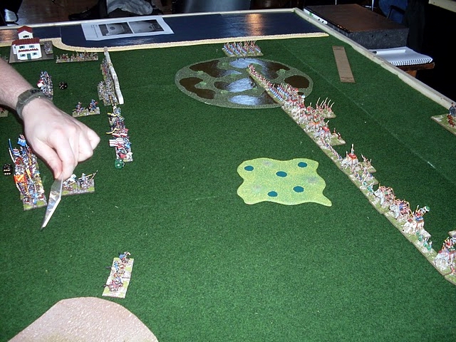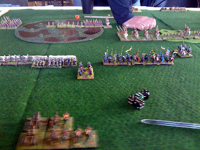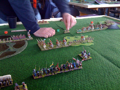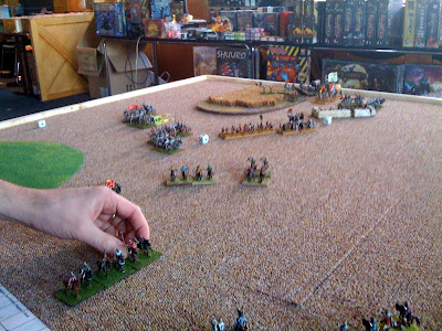 A great (albeit quick) game as I advanced right up to his army and managed to break his left wing command pdq* with some decent combat rolls. (* pretty damned quick)
