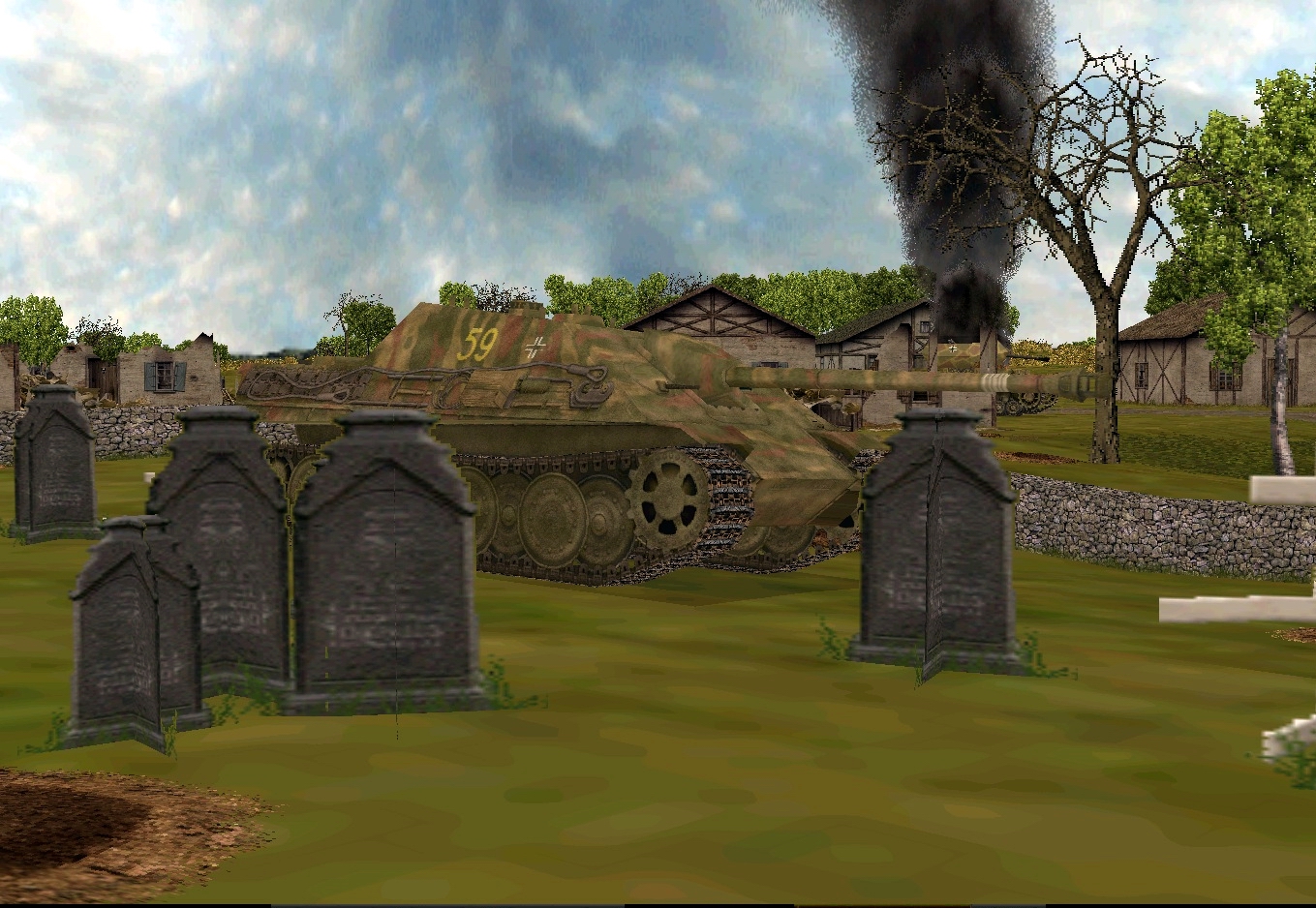 Jagdpanther on prowl in graveyard in a Combat Mission Barbarossa To Berlin game against my Dad