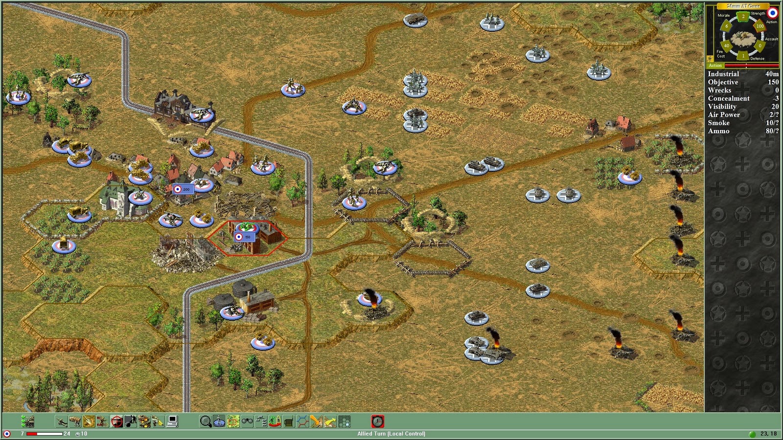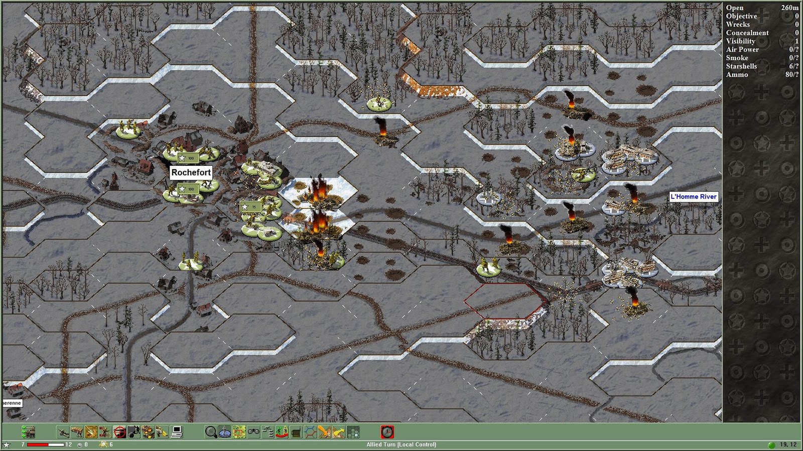 As you can see I prefer the board game style counters to 3D icon options (even though I have take screen shot at lower angle than I would play game). Note the extensive artillery damage on show !