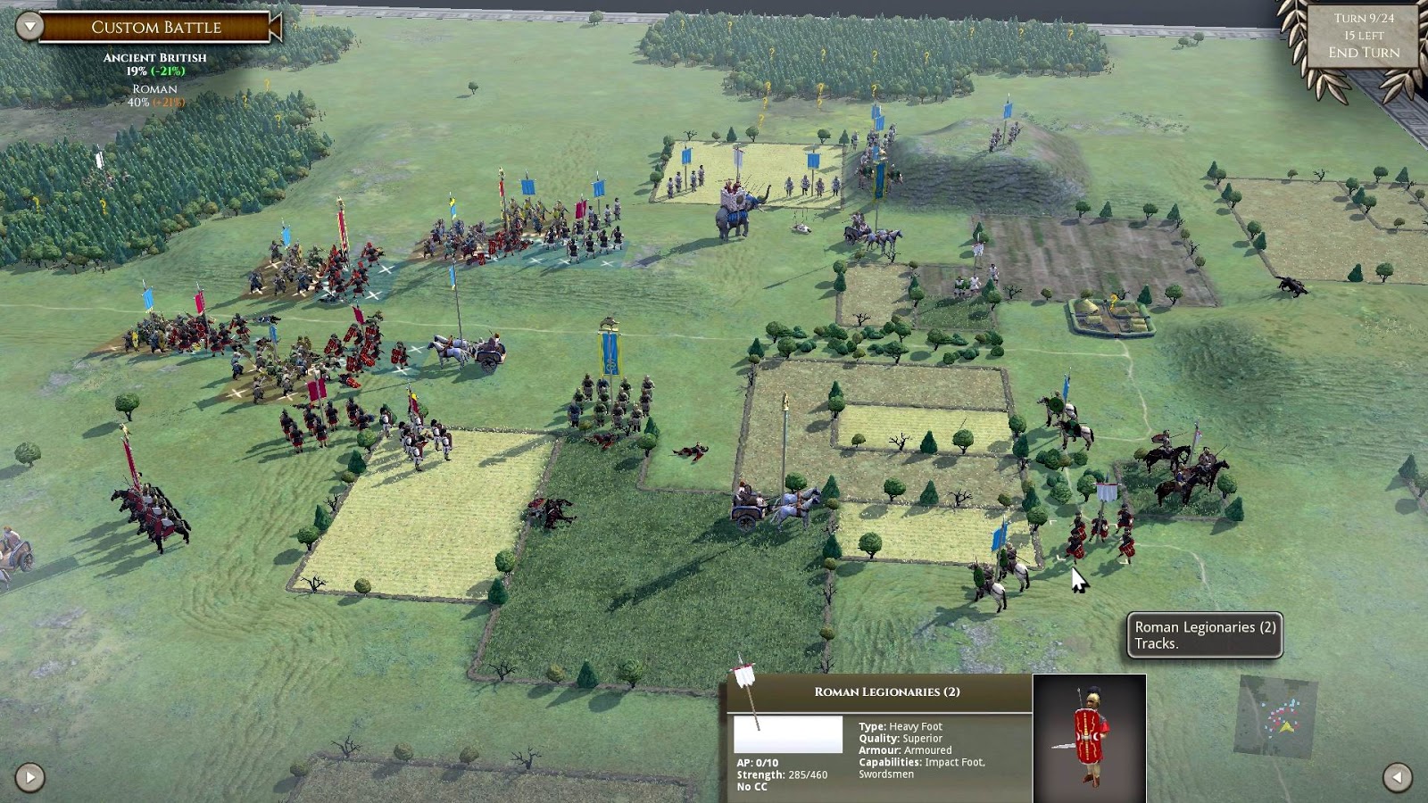 Here a couple of screenshots from ongoing Gallic vs Roman game showing a couple of the views available.