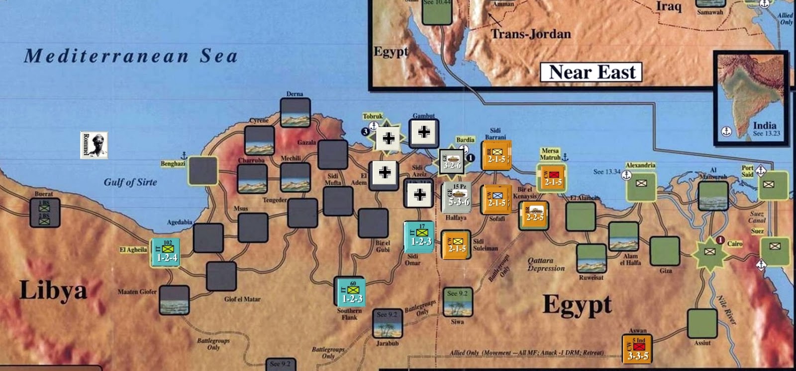 Also started (has been a great weekends wargaming) a new Pbem game via Vassal with Norman of Shifting Sands North African Campaign game. Norman has picked the Allies in the Sonnenblume scenario which starts in Spring 1941 and our first exchange of files just completed. I enjoyed this game solo and expect it to be great versus a real opponent especially as its a derivative of the excellent Paths Of Glory game.