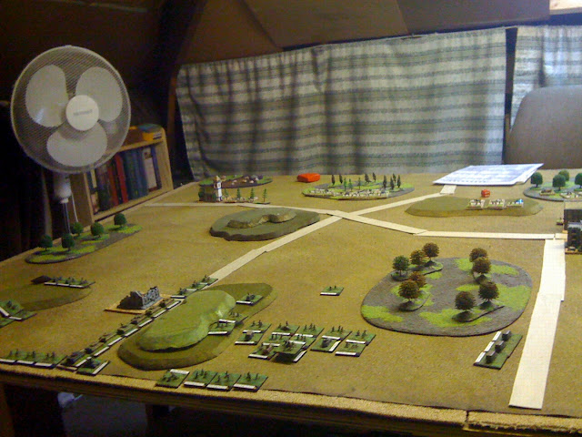 Game was excellent with the short shooting/spotting ranges in SH meaning units can maneuver much more than in most WW2 sets (only FOB is similar) constrained only by their orders (same system of 'arrows' with Attack and Defend orders as Shako - same author of course) .