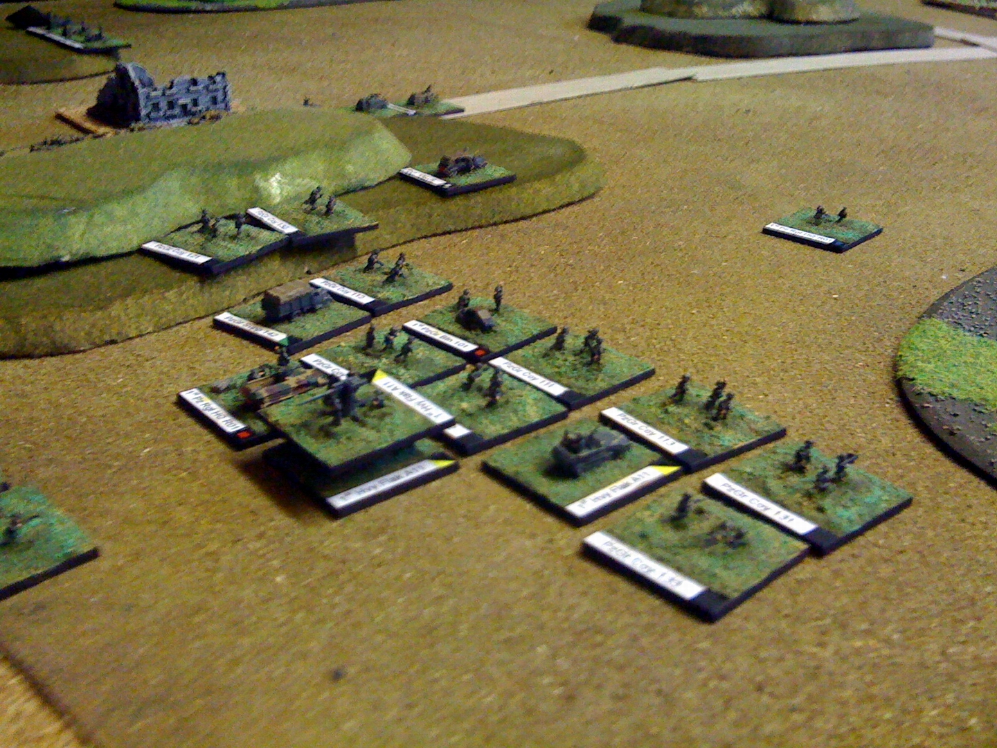 Germans have a Panzerjager Abteilung with a Company of Stugs and 2 of Marders, with a an Armoured PzGren Bttns, 2 Motorizsed PzGren Battns and an Infantry Bttn with off-table support from a 105mm Regt.