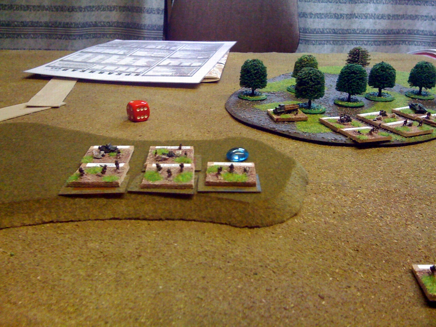 The Ivans as it turned out had 2 Bttns outflanking on my left and both arrived on same turn enmass (one had been delayed 2 turns) and my left flank reinforced PzGr Bttn was soon overwhelmed and broken.