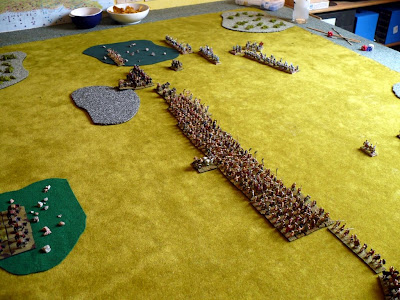 Really close and fun game with loads of action and lots of manouvre with two Regular armies both with reg baggage 'Pip dumps'.