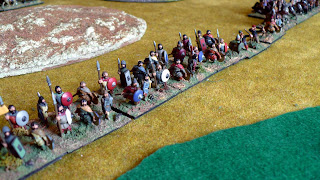 Played first Dbmm league game today vs Richard Murphy using my Avars vs his Early Bulgars (KnF version). A great game played in good spirit only problem being I seemed to have a slightly older draft of 1.1 with some differences (Imp Lh pursuits and Aux counting as Light or Skirmisher types for deployment). A close game with both our central Cmds being broken. My Slav Cmd then broke giving Richard a 14-11 win.