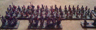 Put some extra flock on bases (not visible in poor iPhone pics) and hopefully tomorrow morning I may get to re-do spears/lances/bows and suchlike in paler/brighter colour to pretty them up a bit.